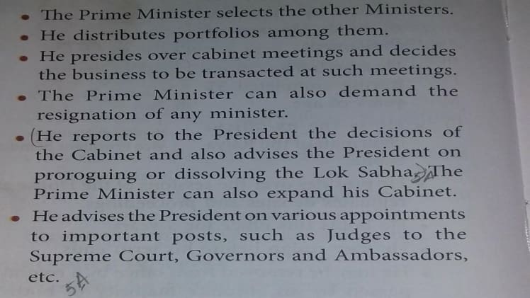 Powers of Prime Minister of India Class 9